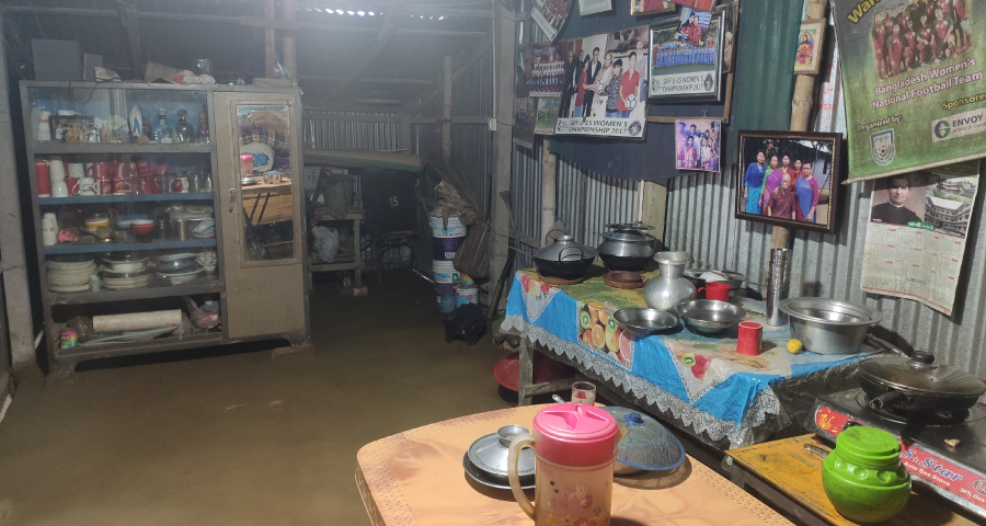 শিক্ষক মোঃ মফিজউদ্দিন বলেন যখন দেখলাম খালি পায়ে খেললে সামনে আরো বড় টুর্নামেন্ট খেলা সম্ভব হবেনা তখন বুট পরে খেলা শেখানোর উদ্যোগ নেয়া হয়। তখন চতুর্থ শ্রেণীতে পড়া মারিয়ার ফুটবল খেলার বুট ছিলোনা। আমার কাছ থেকে দুই দিনের ছুটি নেয় সে। সেই দুই দিন অন্যের কৃষি জমিতে ধান রোপণের দিনমজুরের কাজ নেয় সে। মুজুরি পায় তিনশত টাকা। সেই টাকা দিয়ে আরেকজনের সহযোগীতায় কেনে ফুটবলের বুট জুতা। নতুন জুতা আমাকে যখন দেখাতে আনে তার মুখের আনন্দের হাসিটি এখনো আমার মনে আছে। আমি দেখলাম জুতা পরে লাফাত লাফাতে মাঠে নামলো সে। পরে যখন জানতে পেরেছি ফুটবলের বুট জুতা কেনার জন্য অন্যের জমিতে দিনমজুরের কাজ করেছে চতুর্থ শ্রেণীর এই ছোট্ট মেয়ে, তখন খারাপ লেগেছে। খেলার জন্য প্রয়োজন শক্তি, সেজন্য দরকার পুষ্টি সমৃদ্ধ খাবার। তখন প্রয়োজন ছিলো মারিয়ার জন্য উন্নত খাবার। কেউ এগিয়ে আসেনি, খালি পেট অর্ধ খালি পেটে খেলতে হয়েছে মারিয়াকে।
