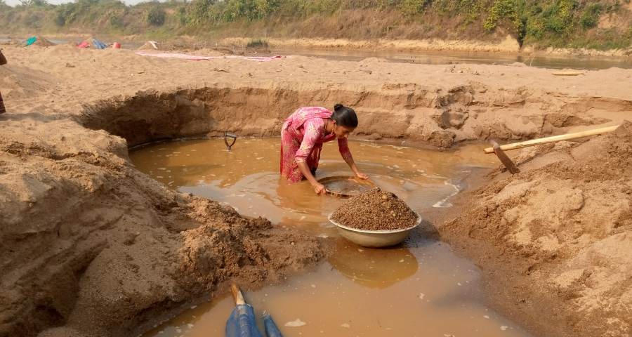 শেরপুরের নালিতাবাড়ী উপজেলার ভারত সীমান্তবর্তী রামচন্দ্রকুড়া মন্ডলিয়া পাড়া ইউনিয়নের পানিহাটা তারানি এলাকায় ভোগাই নদীতে থেকে নুড়ি পাথর তুলে জীবিকা নির্বাহ করছে একদল অভাবী মানুষ।