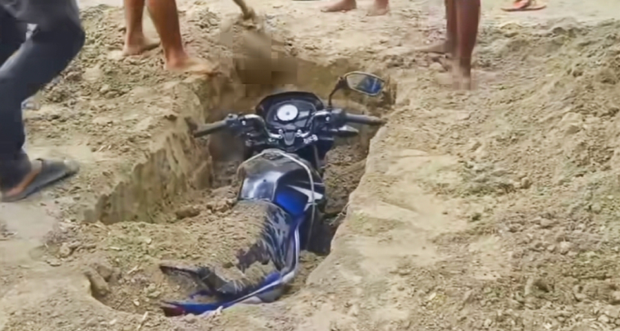 শ্বশুরবাড়ি থেকে পছন্দের মোটরসাইকেল না পেয়ে রাগের বশে একটি মেট্রোবাইক কবর দিয়েছে এক নতুন বর। এমন তথ্য-ছবি ভাইরাল হয়েছে সামাজিক যোগাযোগ মাধ্যম ফেসবুকে। তবে এই তথ্যটি সঠিক নয়। এটি দুই কনটেন্ট ক্রিয়েটরের সাজানো নাটক। ভাইরাল হওয়ার আশায় এমনটি করেছেন আকিকুল বাশার ও ইলিয়াস আহমেদ নামে দুই যুবক।