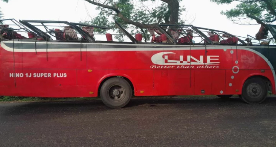পুলিশ কর্মকর্তা মনিরুল ইসলাম জানান, পাবনা থেকে ঢাকাগামী সি লাইনের দ্রুতগামী বাসটি বগুড়া নগরবারী মহাসড়কের শাহজাদপুর উপজেলার টেটিয়ারকান্দি এলাকায় পৌঁছালে নিয়ন্ত্রণ হারিয়ে রাস্তার পাশের গাছে ধাক্কা দেয়। এতে বাসটির ছাদ উড়ে যায়।