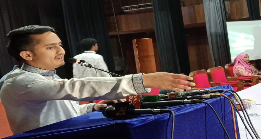 অনুষ্ঠান শুরু করার আগে শহীদ পরিবারের সদস্যদের কাছে গিয়ে খোঁজ নেন জুলাই শহীদ স্মৃতি ফাউন্ডেশনের সাধারণ সম্পাদক সারজিস আলম।